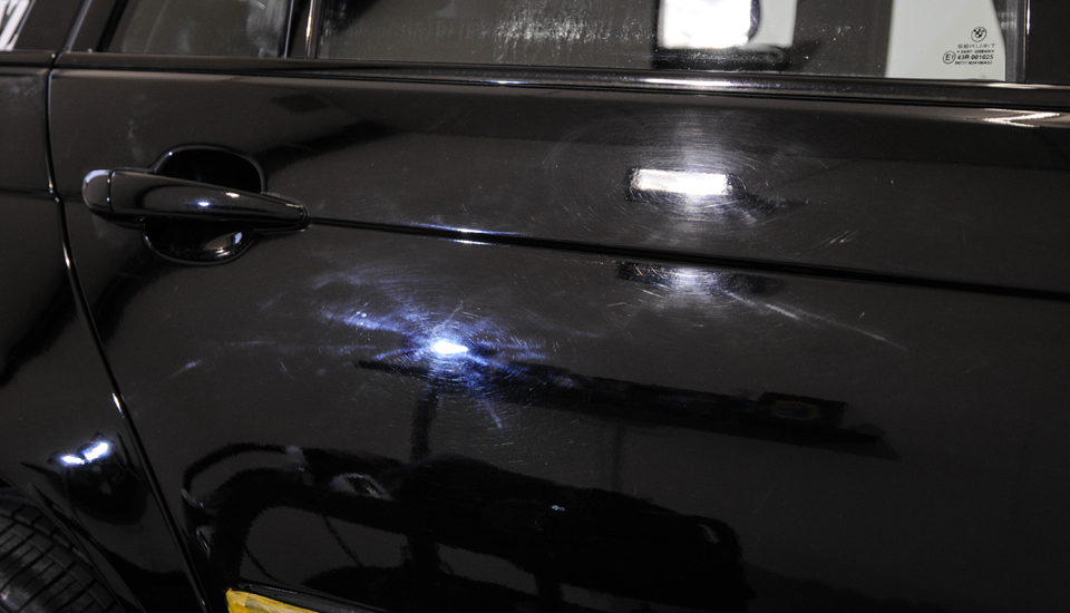 Schleifpolitur in mehreren Durchgängen. Der Aufwand ist abhängig von Farbe, Zustand und Hersteller.